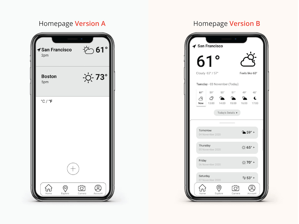 Make visual design more aesthetic and engaging Use color palette to measure temperature and icons for weather status: cloudy, rainy, sunny etc.