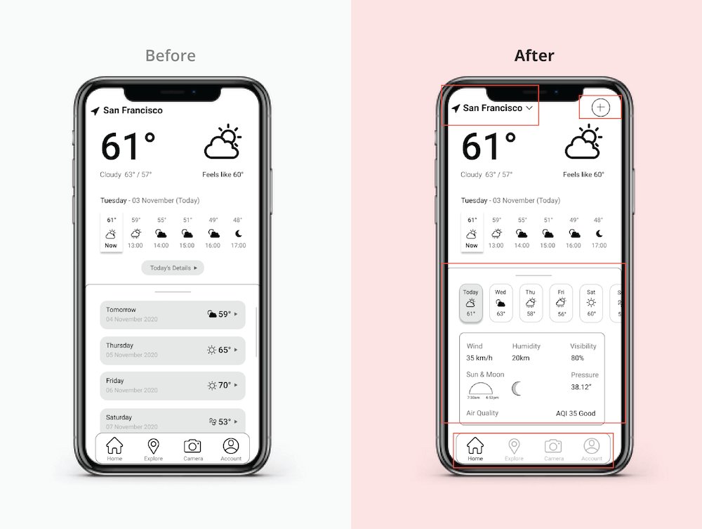 I plan to add more features to the existing redesign in order to make the app interfaces more interactive: ranking system for top three cities or even include a travel plan.