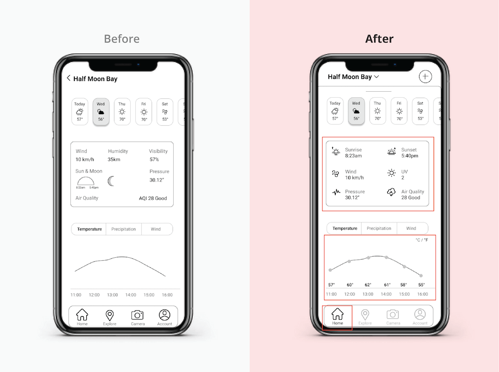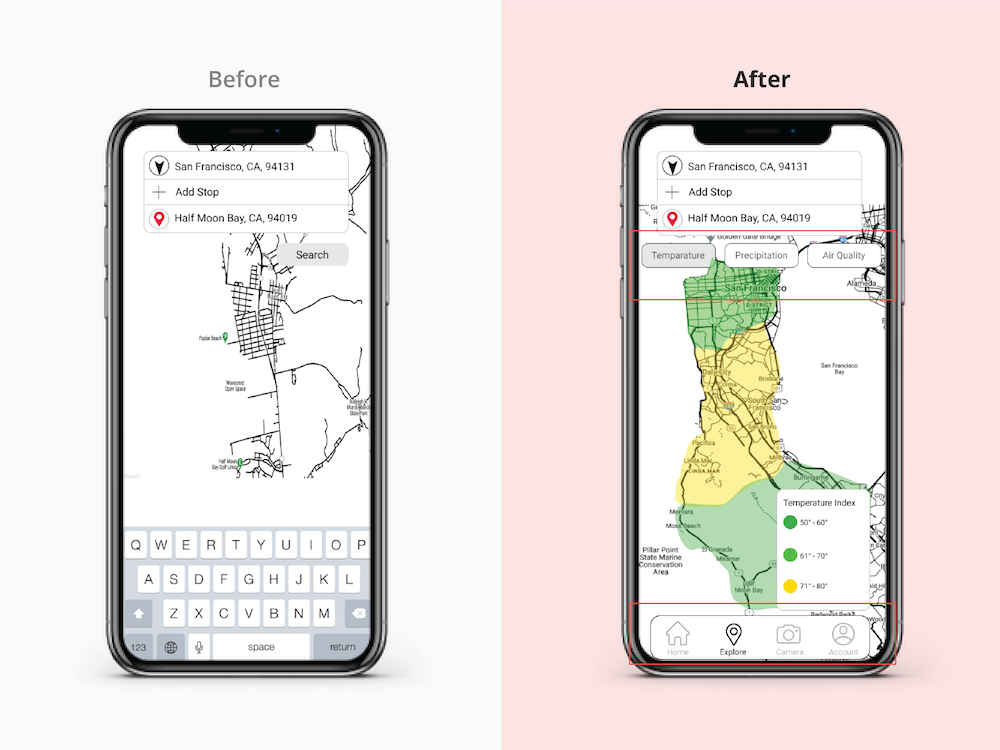At the beginning of design phase, I was overly ambitious - trying to implement as many features as possible in a single user flow. Later on during usability tests, I realized that sometimes "Less is More". My design became so much more clear and functional during the second round of testings.