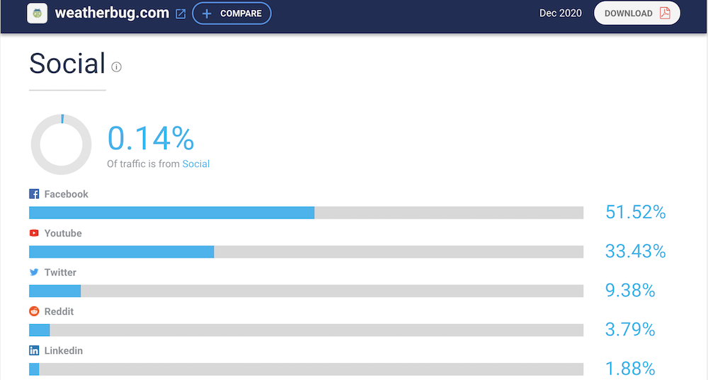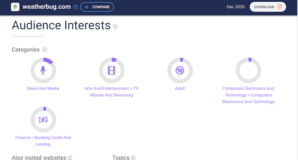 WeatherBug target audience are between age 25-54, more men than women, residing in the US, who earn $60,000/year, interested in news and media, arts and entertainment TV streaming.